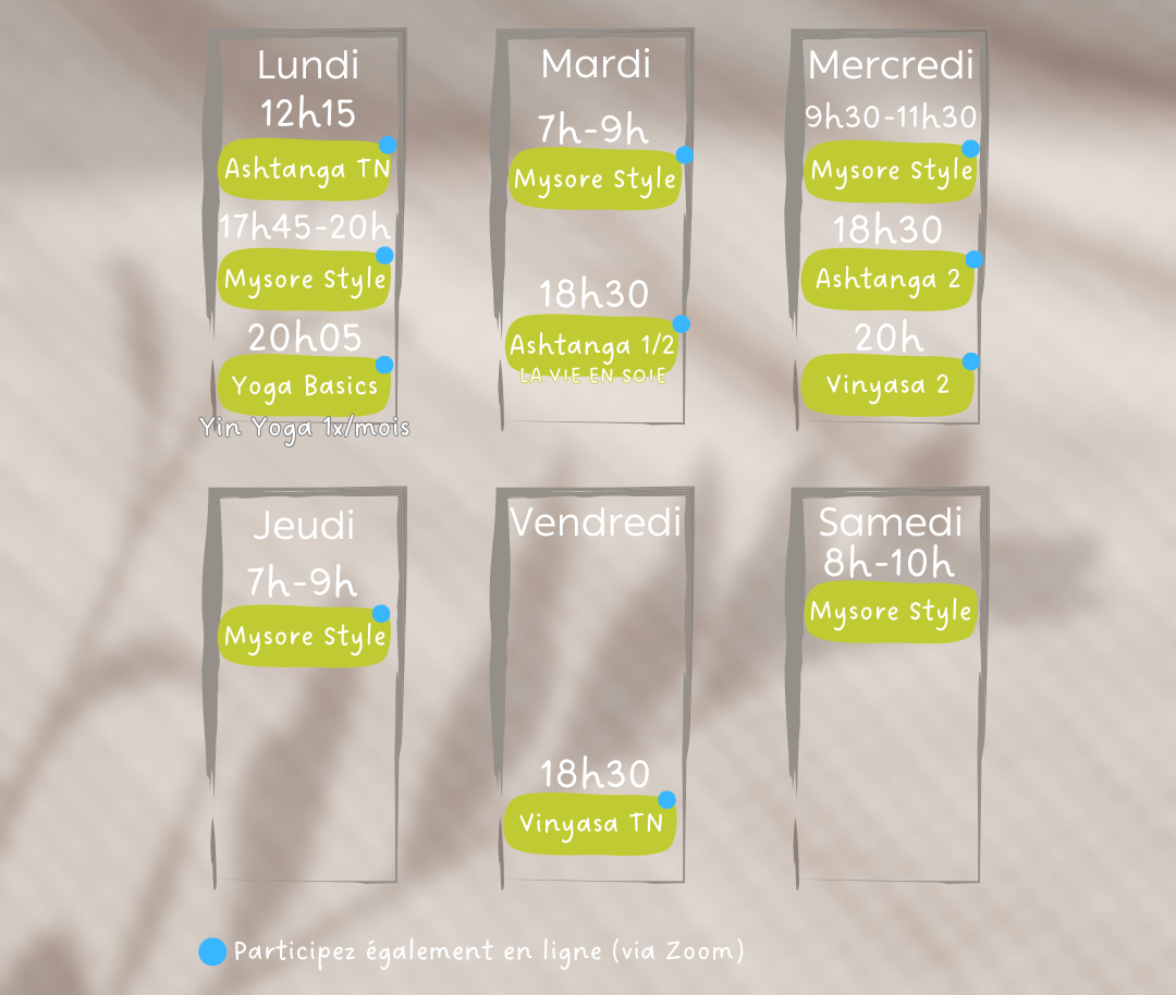 Je vous présente le planning des cours hebdomadaires que je propose à Lyon pour l'année 2025-2026
